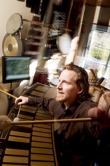 Collaboration with dance and theater is important to Joel. Davel began his career as instrumental music director and actor-percussionist for seven seasons with Milwaukee’s Cream City Semi-Circus. He has been exploring theatrical integration of percussion, electronics, and non-traditional instruments ever since. In more recent collaborations with tenor John Duykers, Davel premiered Max Duyker’s opera, Apricots of Andujar and Both Eyes Open. Davel was also ever-present onstage in his solo accompaniment for The California Shakespeare Theater's All's Well That Ends Well, co-composed with Gina Leishman. Likewise for 2014 and 2015 productions by South Coast Repertory (The Tempest and Peter and the Starcatcher) Davel takes the stage as an actor-percussionist: In The Tempest as an ever present spirit exploring instruments created for the Tom Waits score. “The percussionist is amazing!” – On Stage Los Angeles